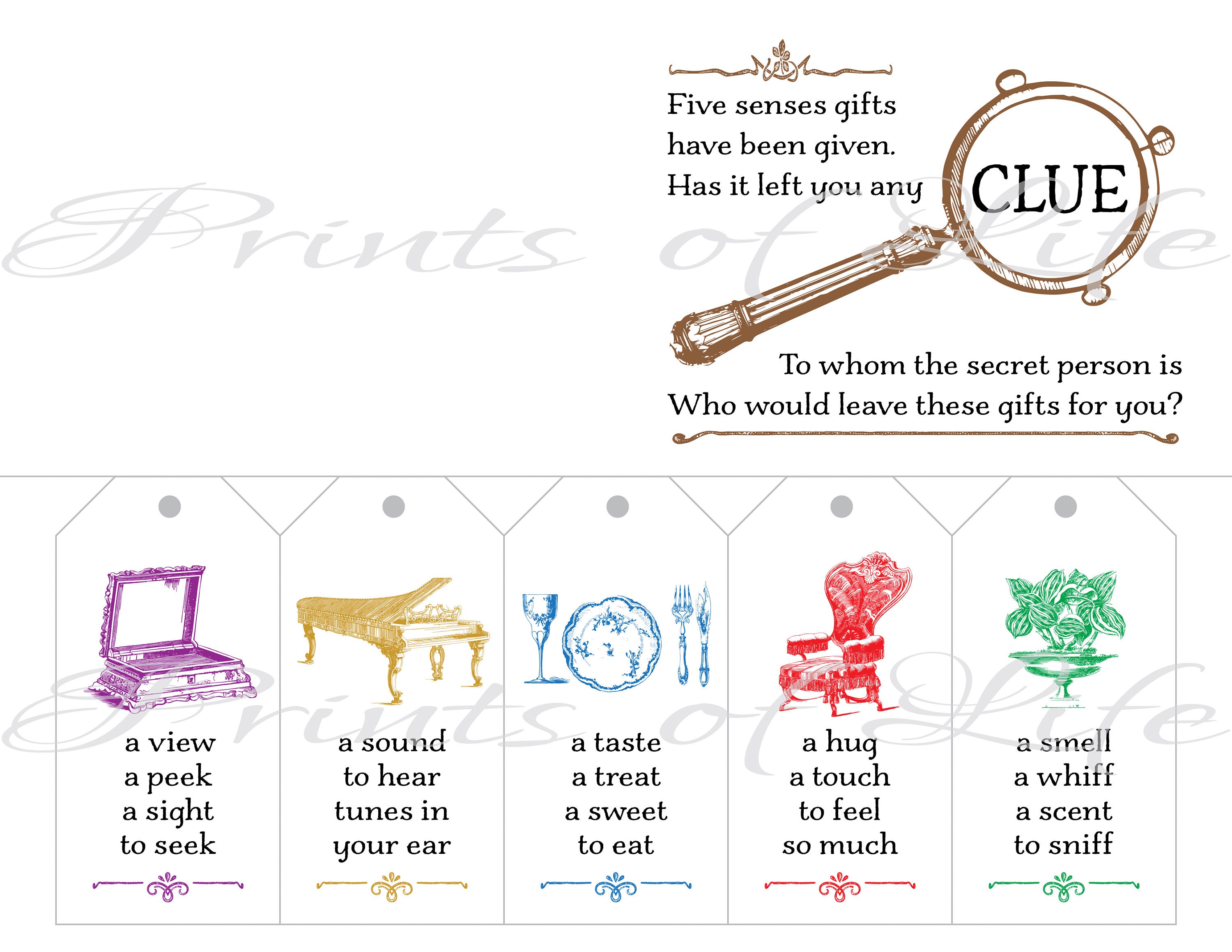 Five Senses Gift Tags Card Secret Person Exchange Instant Etsy Sweden